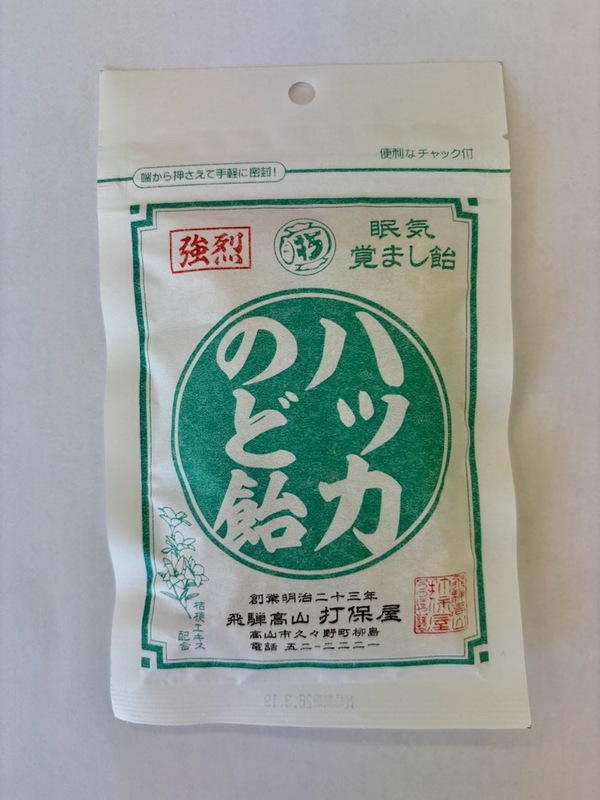 '하카(ハッカ)'는 일본어로 페퍼민트를 뜻하며, '노도아메(のど飴)'는 목 사탕이라는 의미입니다. 이름 그대로 목을 시원하게 해 주면서 졸음까지 깨워주는 일석이조의 효과를 자랑합니다.