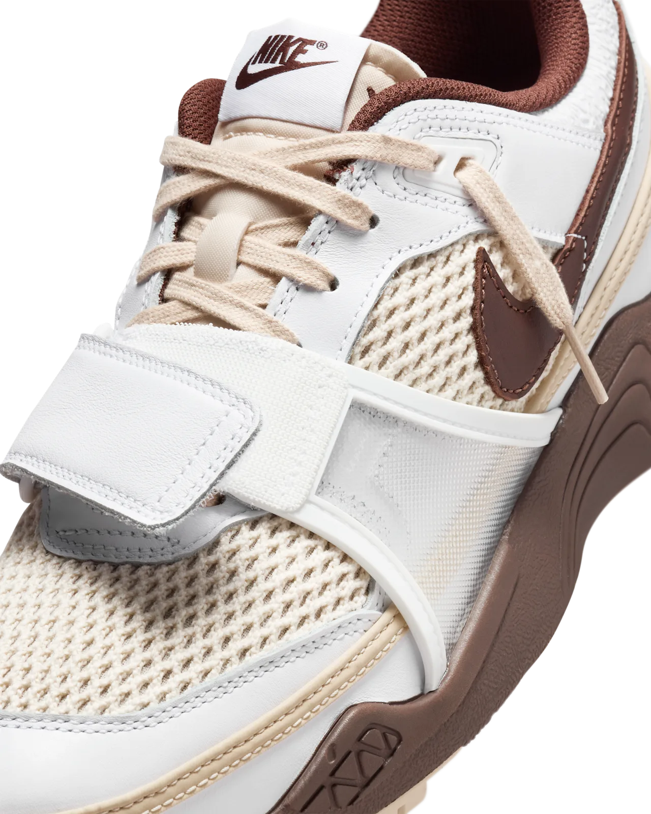 트래비스 스콧의 첫 번째 시그니처 스니커즈와 마찬가지로, 줌 필드 잭스는 그의 정확한 스펙과 아이코닉한 스타일에 맞춰 디자인되었습니다. 최고 수준의 아티스트로서 쉴 새 없이 에너지를 쏟아붓는 스콧의 라이프스타일에 맞게 제작된 이 새로운 버전은 하루 종일 열정적인 퍼포먼스를 선보일 때 탁월한 접지력과 편안함, 통기성을 제공합니다. 두 가지 아이콘의 매시업으로 완성된 어퍼는 풀그레인 가죽과 산뜻한 직물 소재로 90년대 나이키 랜드 샤크를 재해석했으며, 쿠션감이 뛰어난 미드솔에는 90년대 줌 스피리돈의 디자인 라인을 차용했습니다. 발 앞부분의 스트랩과 메쉬 소재의 디테일, Cactus Jack 브랜딩이 돋보이는 줌 필드 잭스는 발 전체에 순수한 형태감과 편안한 착화감을 선사합니다. 또한 깔끔한 화이트 앤 라이트 초콜릿 컬러웨이가 더욱 근사한 스니커즈 룩을 완성해 줍니다.